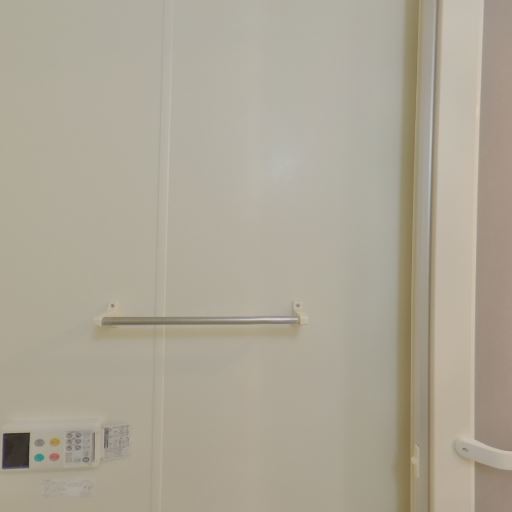 • タオル掛けあり(確度78%):右側壁面にタオルバーが設置されている。