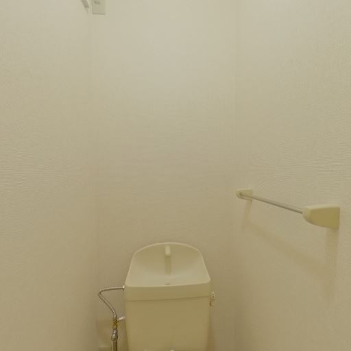 • 温水洗浄便座あり(確度86%):便座側面に操作リモコンが見え、温水洗浄機能付きと分かる。