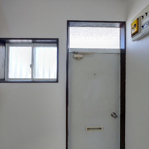 プライバシー配慮のすりガラス(確度78%):窓の一部がすりガラスで、外からの視線を遮りつつ採光を確保している。