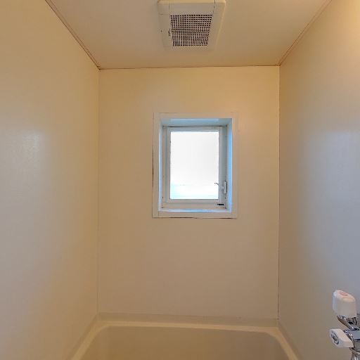 浴室に小窓あり(確度90%):浴室の壁面に外に面した小さな窓があり、自然光と換気が見込める。