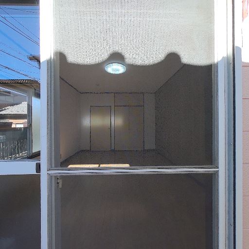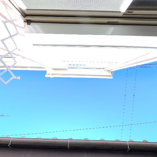 採光は良好な時間帯がある(確度70%):空がよく見え直射日光が差し込んでいる。室内側にも日光の反射が見える。