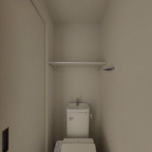 • トイレの上部収納棚(確度86%):便器の上にシンプルな一段棚があり、トイレットペーパーや小物の置き場として使えそう。