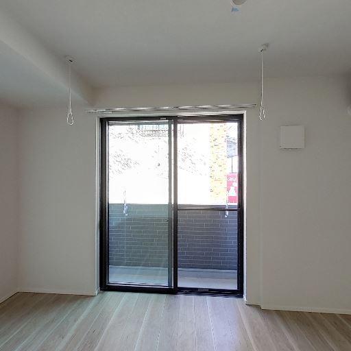 • 採光とバルコニー(確度84%):掃き出しの大きなガラス戸の向こうに手すりのあるバルコニーが見える。外光がしっかり入りそう。