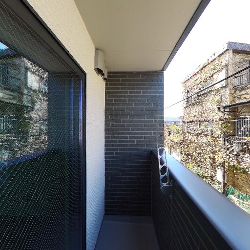 • バルコニーあり(確度90%):手すりと物干し金具が設置されたバルコニーが確認できる。床面も十分な奥行きがあり、人が立って洗濯物を干せるスペースがある。