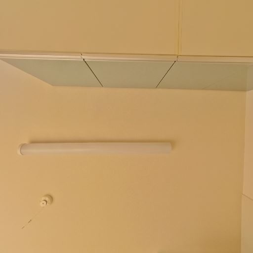 • 照明・天井(確度63%):天井に直管型の照明器具と点検口がある。ダウンライトは少なめ。