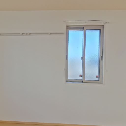 • バルコニーと物干し金物(確度73%):掃き出し窓の外にバルコニーがあり、物干し金物が見える。