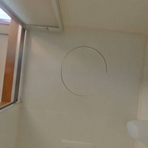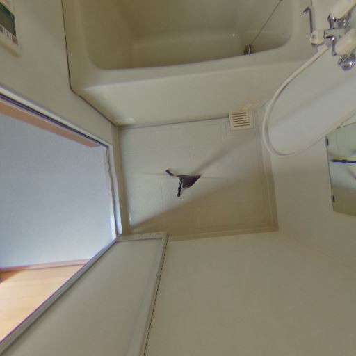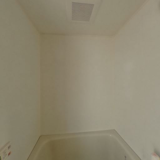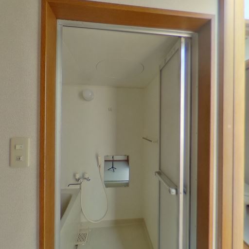 • 浴室換気・乾燥の可能性(確度70%):天井に換気扇、壁面に丸い点検口があり、浴室の換気は確保されている。窓はなく、隣室側の開口で採光。