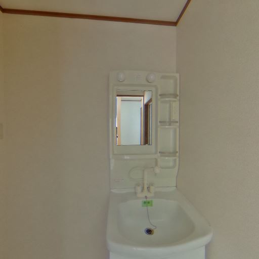 • 独立洗面台あり(確度86%):鏡・照明・収納棚付きの独立洗面台が設置されている。