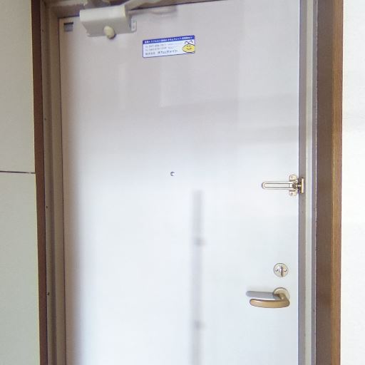 • 玄関ドアとセキュリティ(確度83%):内側からチェーン(またはバー)ロックとドアスコープが確認できる。ドアクローザーも付いている。
