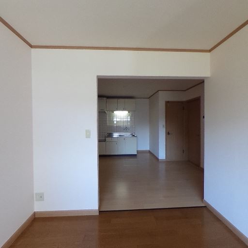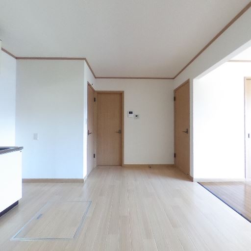 LDK側は開放感がある(確度84%):キッチン前から居室側にかけて床面が広く見え、隣室への開口も大きいため、圧迫感は少ない印象。