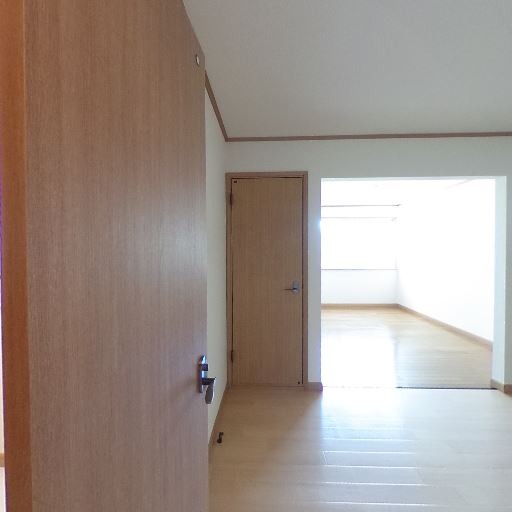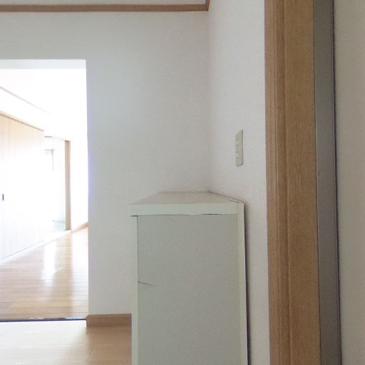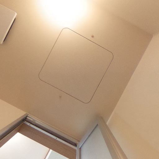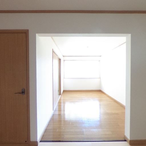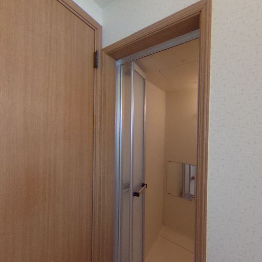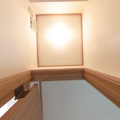 隣室からの採光が期待できる(確度84%):開口部の先に明るい空間が見えており、このスペース自体にも隣室経由で光が届いている様子がある。