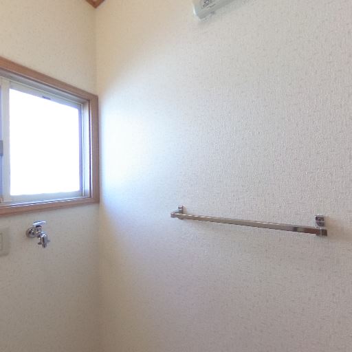 タオル掛けが設置されている(確度95%):壁面に横長のタオルバーが備え付けられており、洗面所内でタオルを掛けられる。