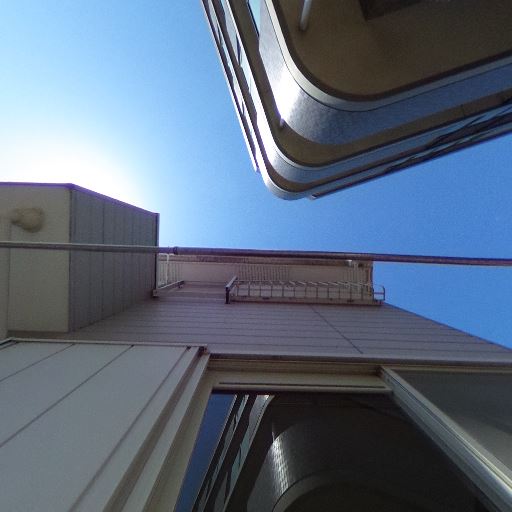 日当たりは良好(確度88%):複数方向で強い直射日光と明るい青空が確認でき、屋外空間としての採光は良い。通路や周辺敷地にも十分な明るさがある。