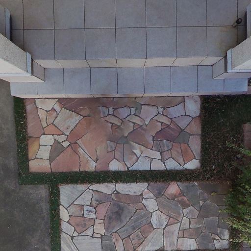 アプローチの石張り(確度73%):エントランスまでのアプローチに石張りが施され、見た目が良い。