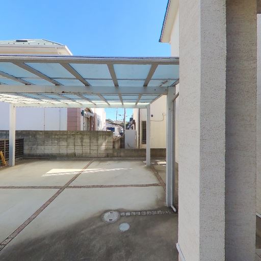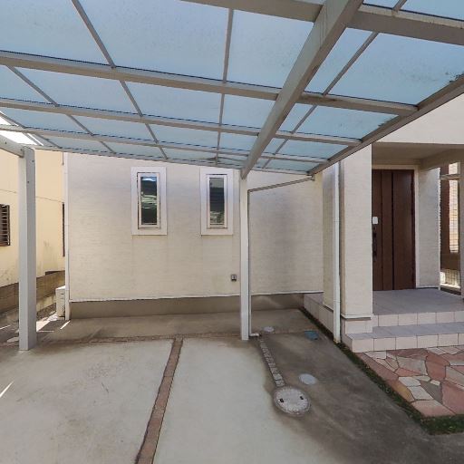 カーポート付き駐車スペース(確度82%):屋根付きのコンクリート敷き駐車場があり、2台分程度の幅がありそう。雨天時の乗り降りや荷物の出し入れに便利。