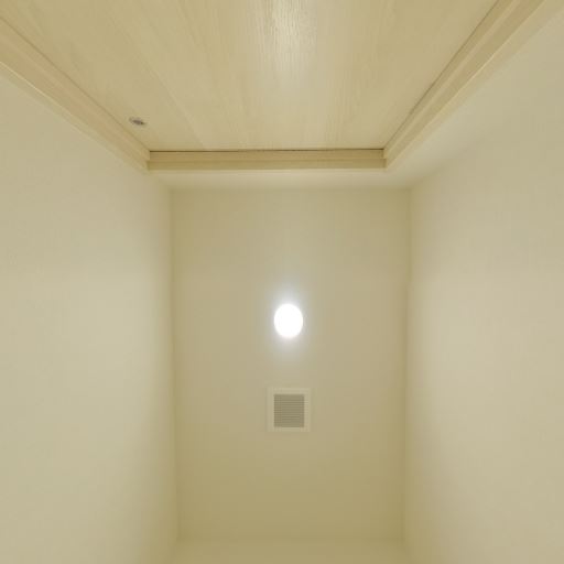 換気と照明(確度88%):天井にダウンライトと換気口があり、個室でも明るさと換気が確保されている。