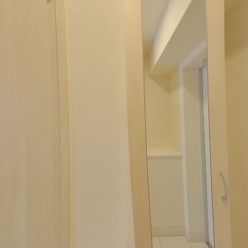 収納スペースあり(確度78%):室内奥にクローゼット扉が見える。