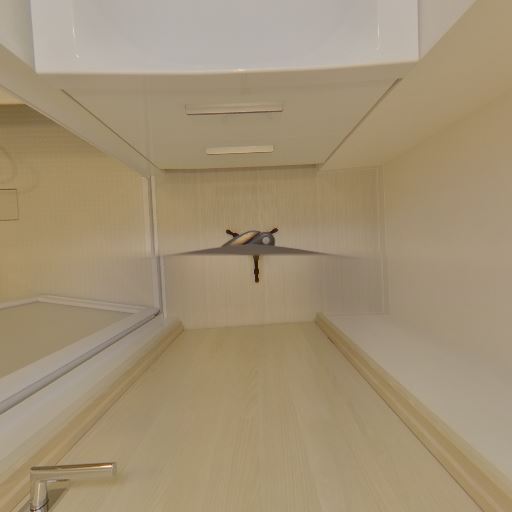 床・洗濯機置き場の可能性(確度68%):床は木目調で、排水口と給水栓のあるスペースがあり洗濯機置き場と推測。