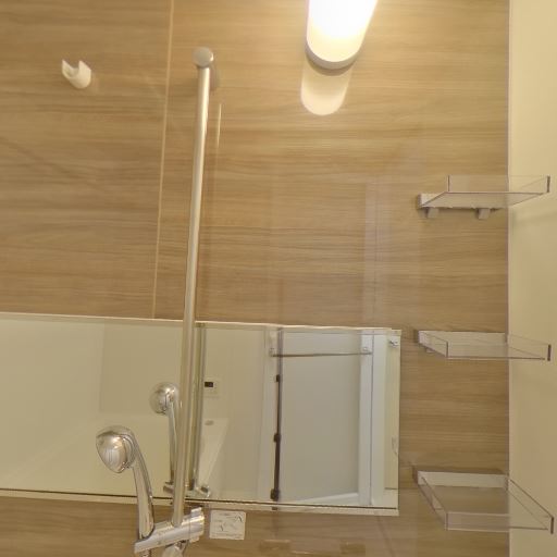 浴槽とシャワーの新しさ(確度80%):浴槽・水栓・シャワーヘッドが全体的に清潔で新しめに見える。