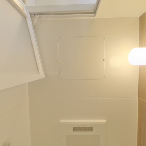 浴室乾燥・換気設備(確度78%):天井に換気口と点検口があり、浴室乾燥機または十分な換気設備が備わっているように見える。