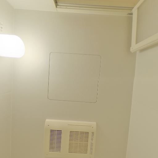 浴室乾燥・換気設備あり(確度86%):天井に換気扇ユニットと点検口が見える。
