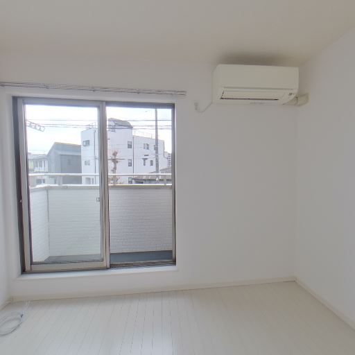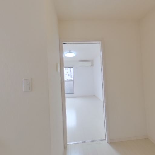 個室への動線良好(確度69%):廊下から居室へそのまま入れる扉があり、室内にエアコンと照明が見える。