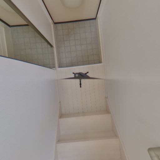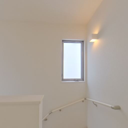 手すり付きで安全な階段上スペース(確度77%):腰壁と手すりが見え、階段ホールの安全対策が取られている。