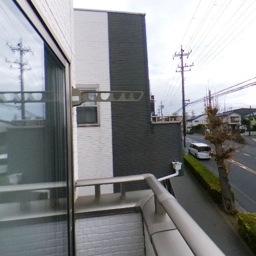 前面道路に面したバルコニー(確度78%):バルコニーから車道がよく見える位置で、交通量が一定数ありそう。視界は開けている。