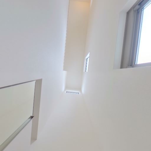 吹き抜けのような縦方向の抜け(確度74%):天井方向に高さがあり、スリット窓が上下に配置されている。