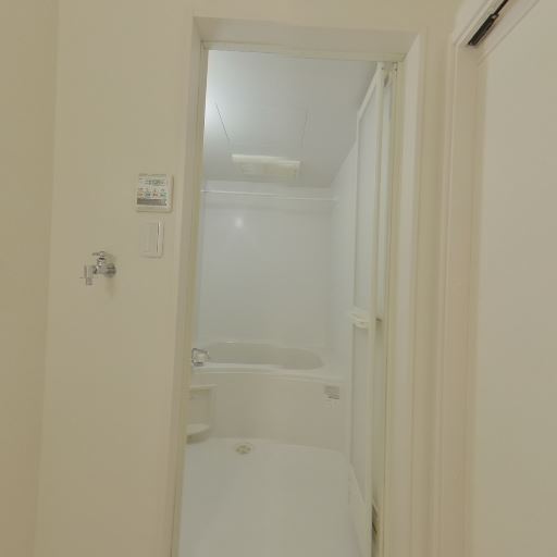 浴室が近接したレイアウト(確度86%):洗面室から引き戸で浴室へ入れる動線。浴槽が見える。
