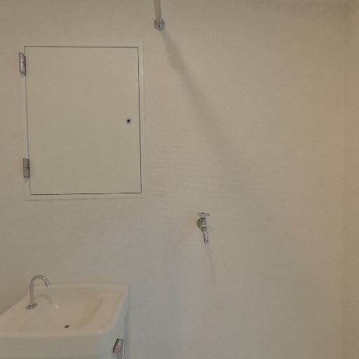 独立洗面台の存在(確度78%):小型の洗面台が壁際に設置されている。