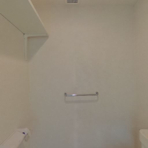タオル掛け・棚などの設備(確度82%):壁面にタオルバーと上部棚がある。