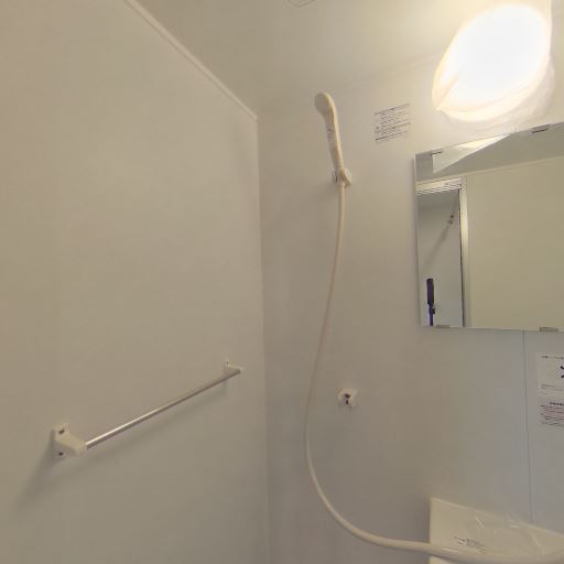 浴室が近接(確度86%):引き戸の先にシャワー付きの浴室・洗面スペースが見える。