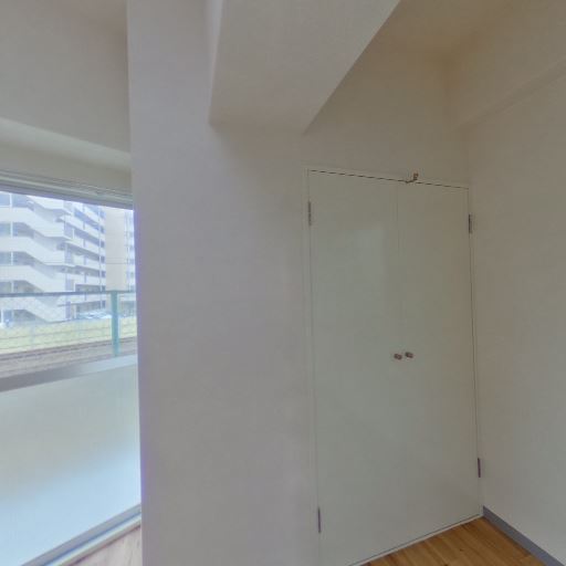 採光と眺望(確度78%):大きな掃き出し窓がありバルコニーに面していて明るい。外は建物が近く、抜けは限定的。