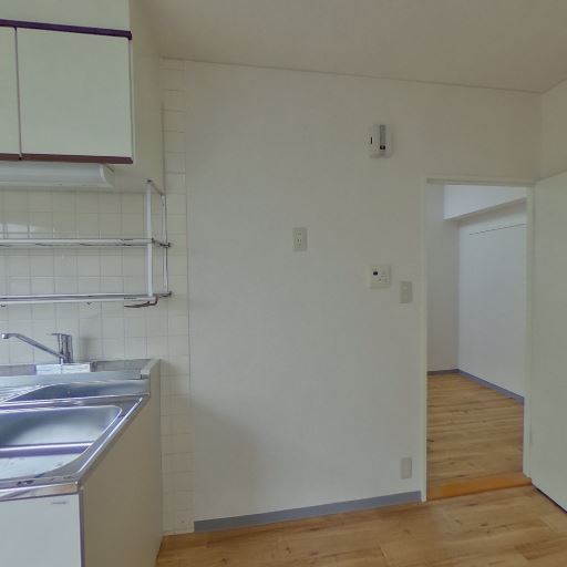 コンロスペースの有無(確度61%):キッチンにビルトインコンロは見当たらず、据置き型を置くタイプに見える。