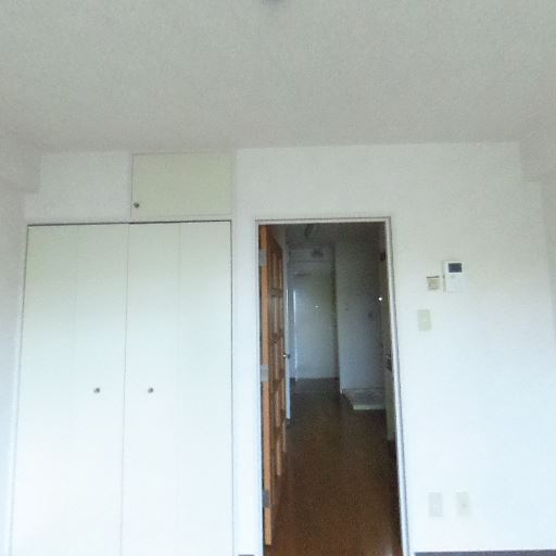 収納スペースあり(確度88%):2枚扉のクローゼットと上部収納がある。