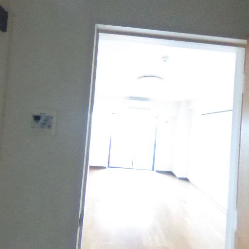 居室側は明るい(確度76%):キッチン側から居室を見ると大きめの開口部から強い外光が入っている。
