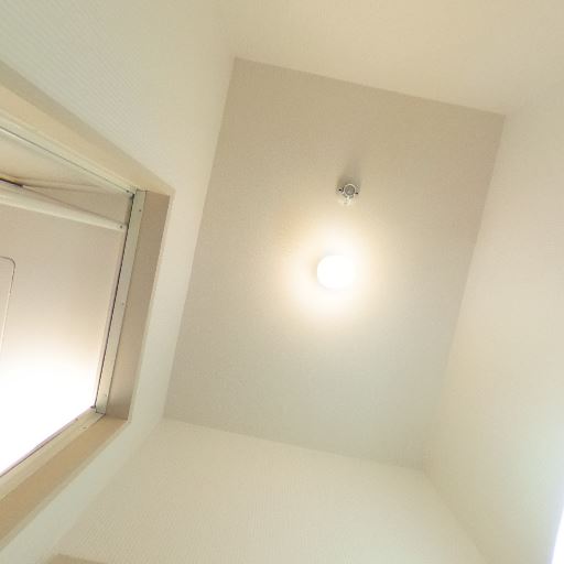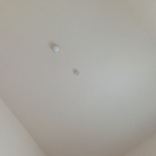 照明器具は未設置の可能性(確度80%):天井に引掛シーリングと検知器らしき機器が見えるが、照明本体は付いていない。