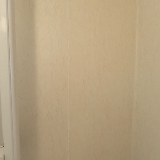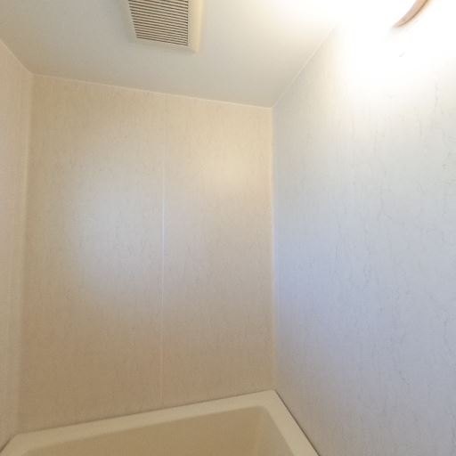 浴槽と壁面の清潔感(確度70%):浴槽や壁パネルは明るい色で目立つ汚れやカビは見当たらない。