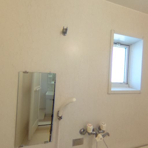 浴室が近接(確度90%):洗面所の隣に浴室があり、浴槽・小窓・鏡・シャワーを確認。