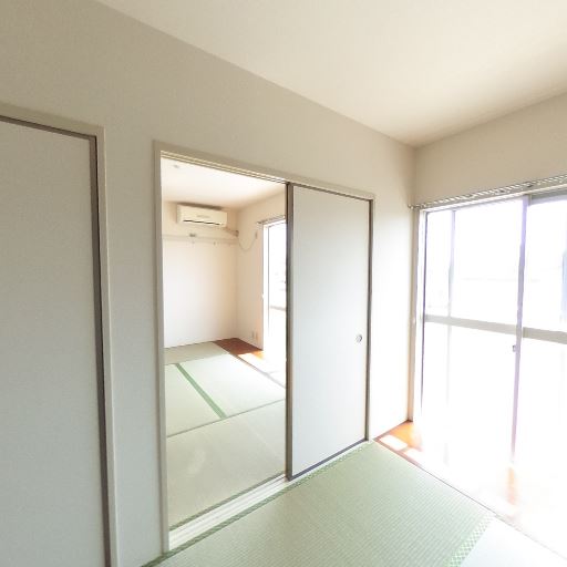 和室+続き間構成(確度84%):畳敷きの和室で、引き戸の先にもう一室(同じく畳)が続くレイアウト。