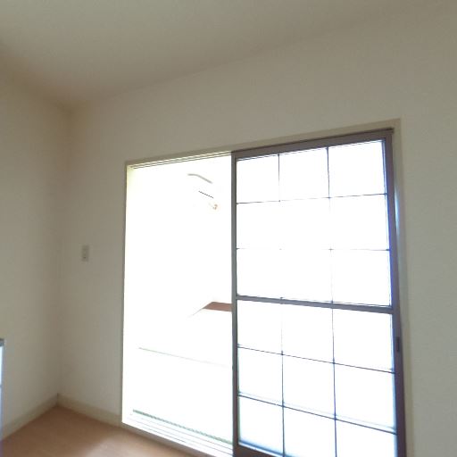 採光と窓(確度78%):掃き出し窓があり、室内が明るい。網戸や格子のような枠が見える。