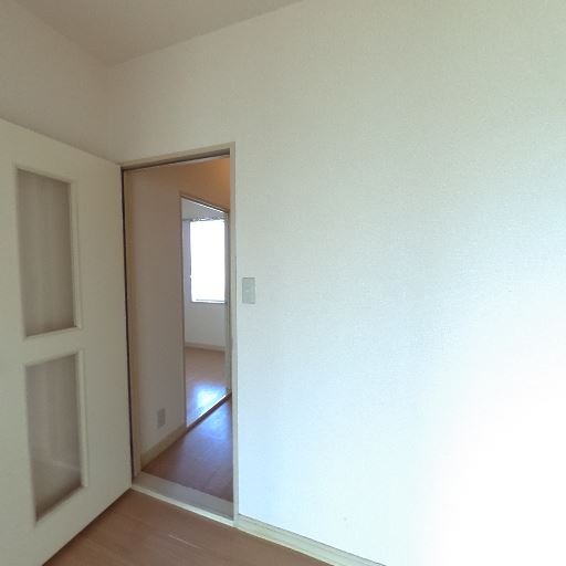 隣接する和室との続き間(確度86%):引き戸(ガラス)越しに畳の部屋が見える。小部屋と和室が隣接している構成。