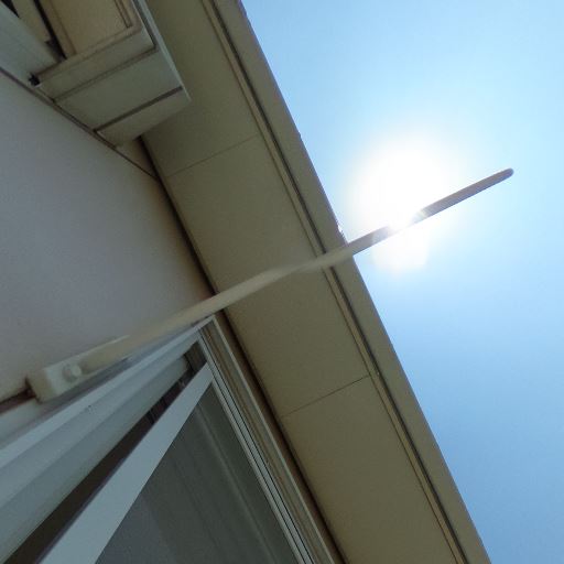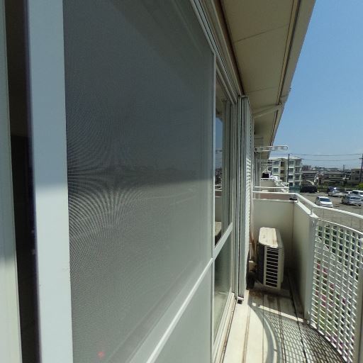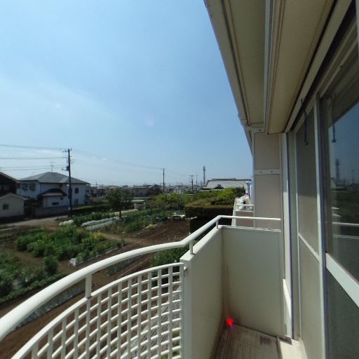 日当たりの良さ(確度86%):直射日光が強く、手すりや床にくっきり影が出ている。
