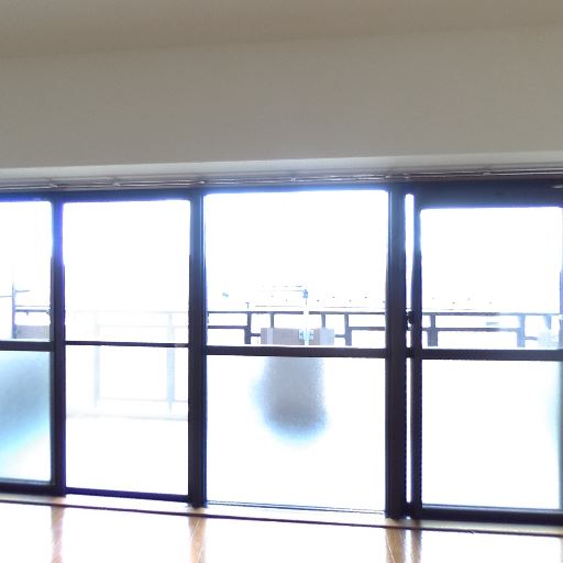 自然光が入りやすい窓(確度85%):一面に窓があり、室内全体が明るく見えることから、日中は自然光を取り込みやすい部屋と考えられる。