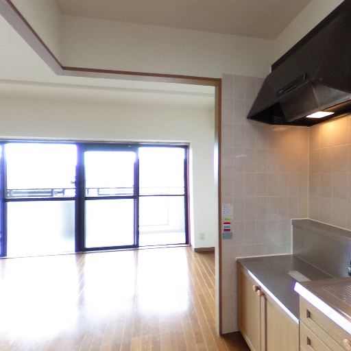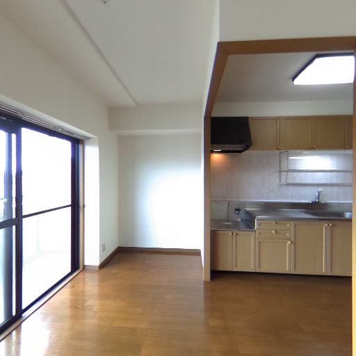 自然光が入りやすいキッチン配置(確度82%):隣接する居室側に大きな開口部があり、キッチンまで明るさが届きやすい間取りと推測される。