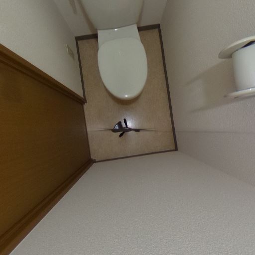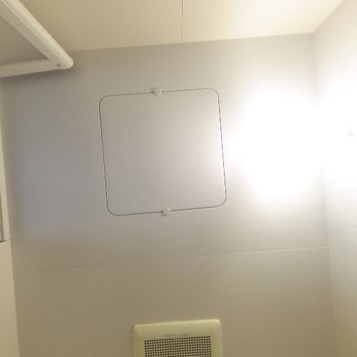 上部に点検口らしき設備がある(確度76%):便器正面の壁上部に四角い点検口または収納扉のようなものが確認できる。設備点検用の可能性が高い。