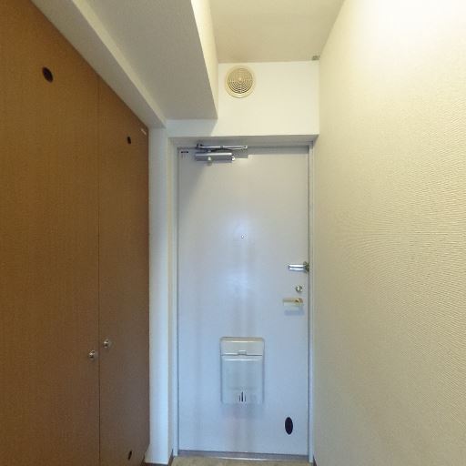 玄関まわりに収納がある(確度88%):玄関ドア脇に天井近くまである木製の収納扉が見え、靴や日用品をしまえる収納スペースが確保されている可能性が高い。