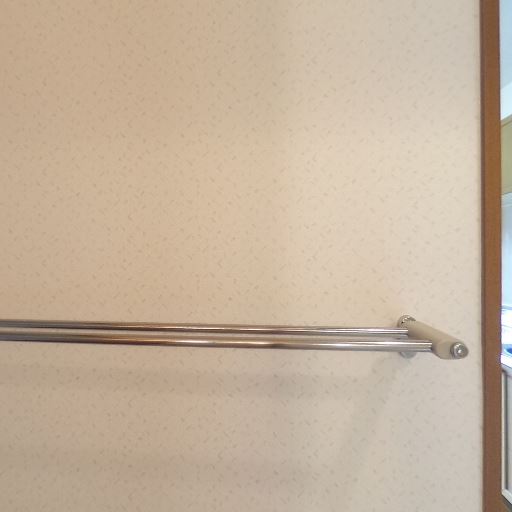 タオル掛けが設置されている(確度93%):壁面に横長のタオルバーが設置されており、洗面・入浴後の使い勝手に配慮されている。
