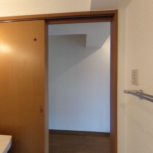 壁面が広くレイアウトしやすい(確度75%):左側の壁面は開口部や大きな設備が少なく、家具の設置や壁面活用がしやすい構成に見える。